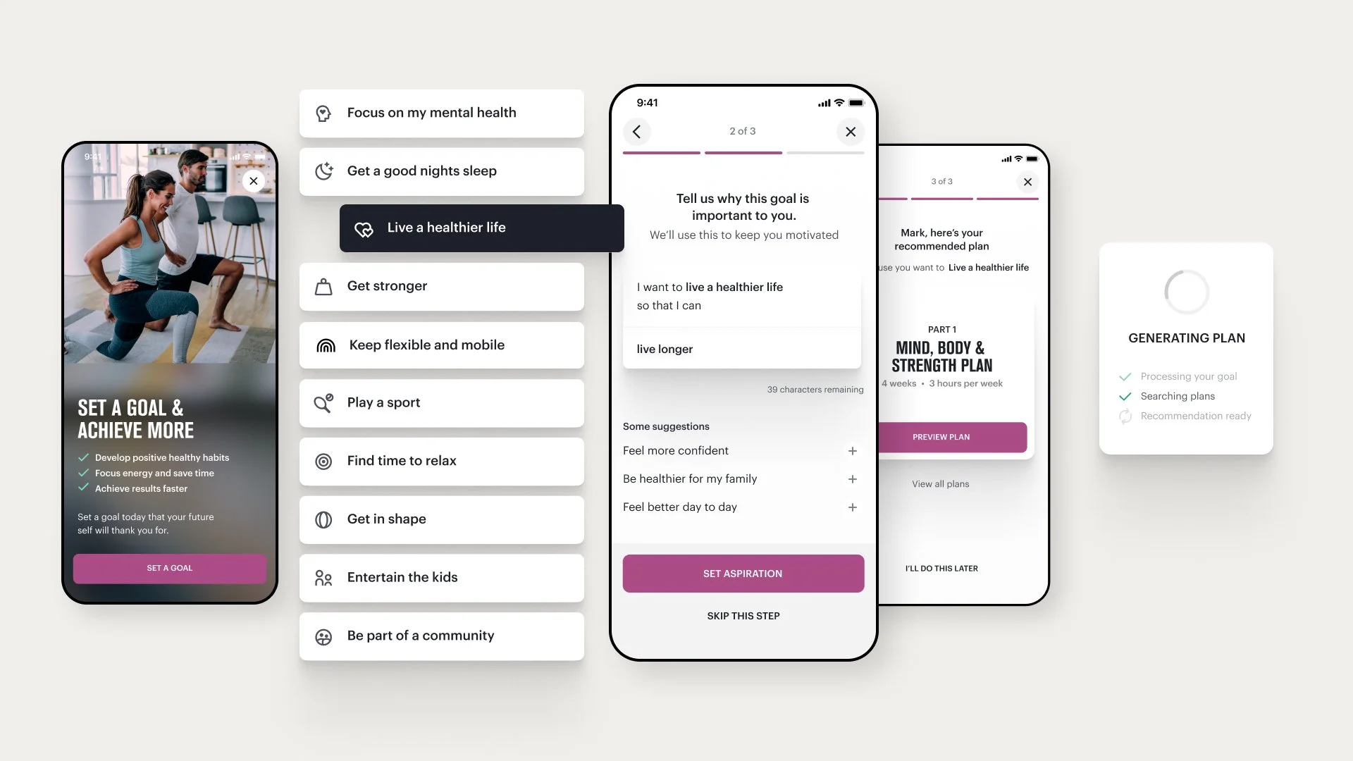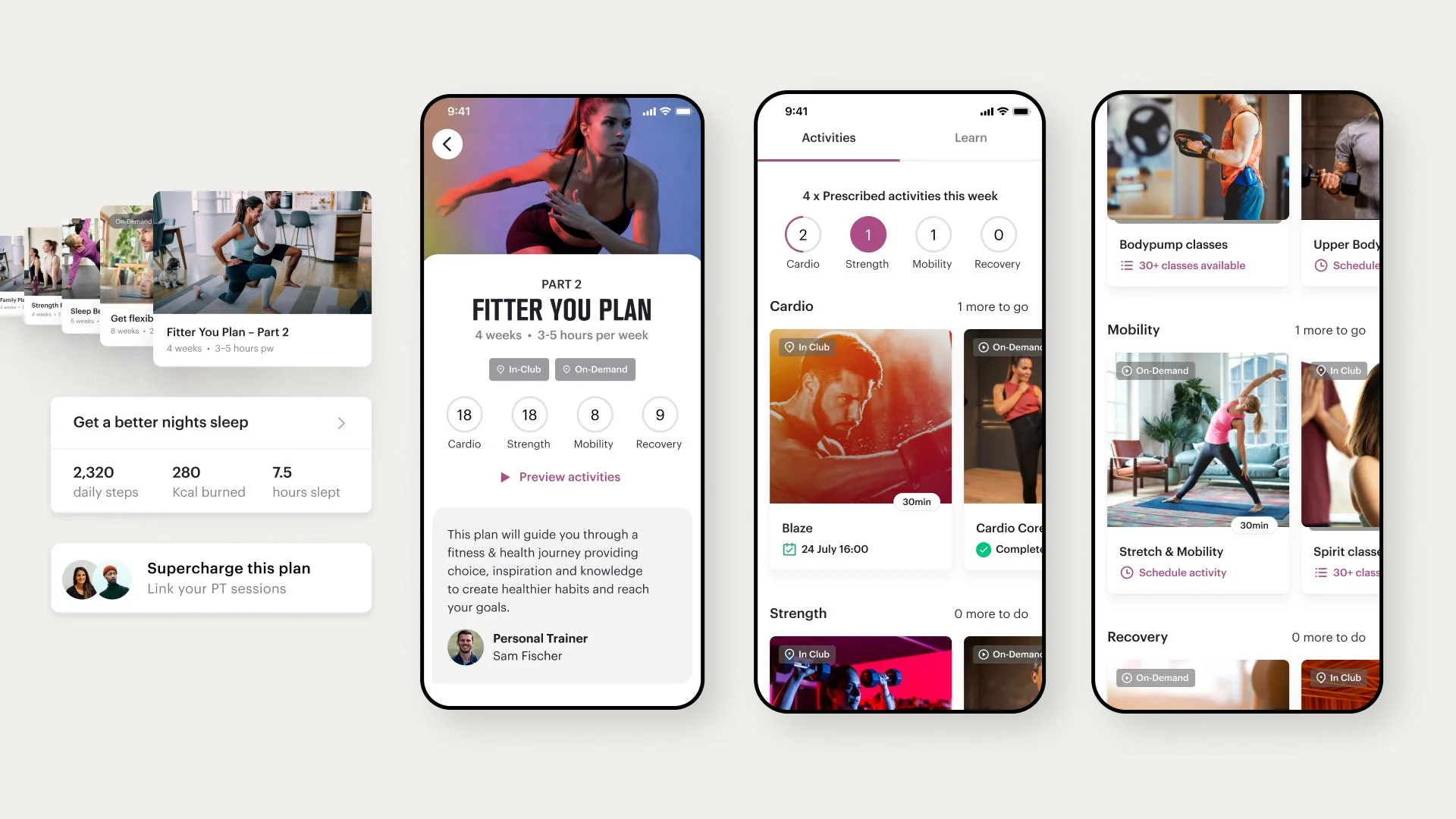 We drew on in-club visits, expert interviews, user testing and behavioural science principles to design a lifestyle proposition that helps members create tailored health and wellness routines that incorporate gym activities, virtual classes and wellness exercises.